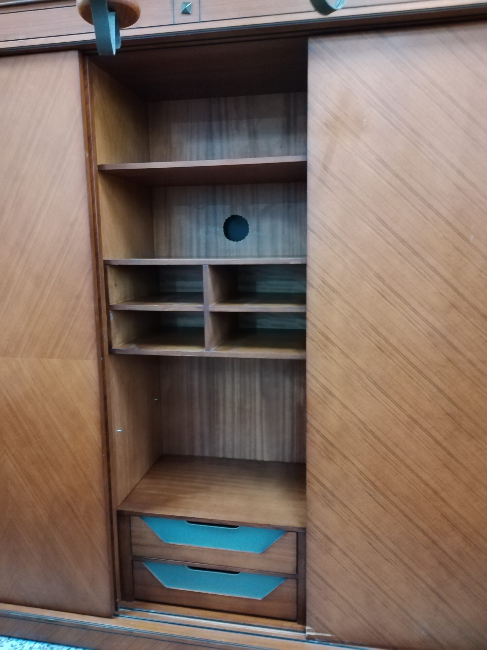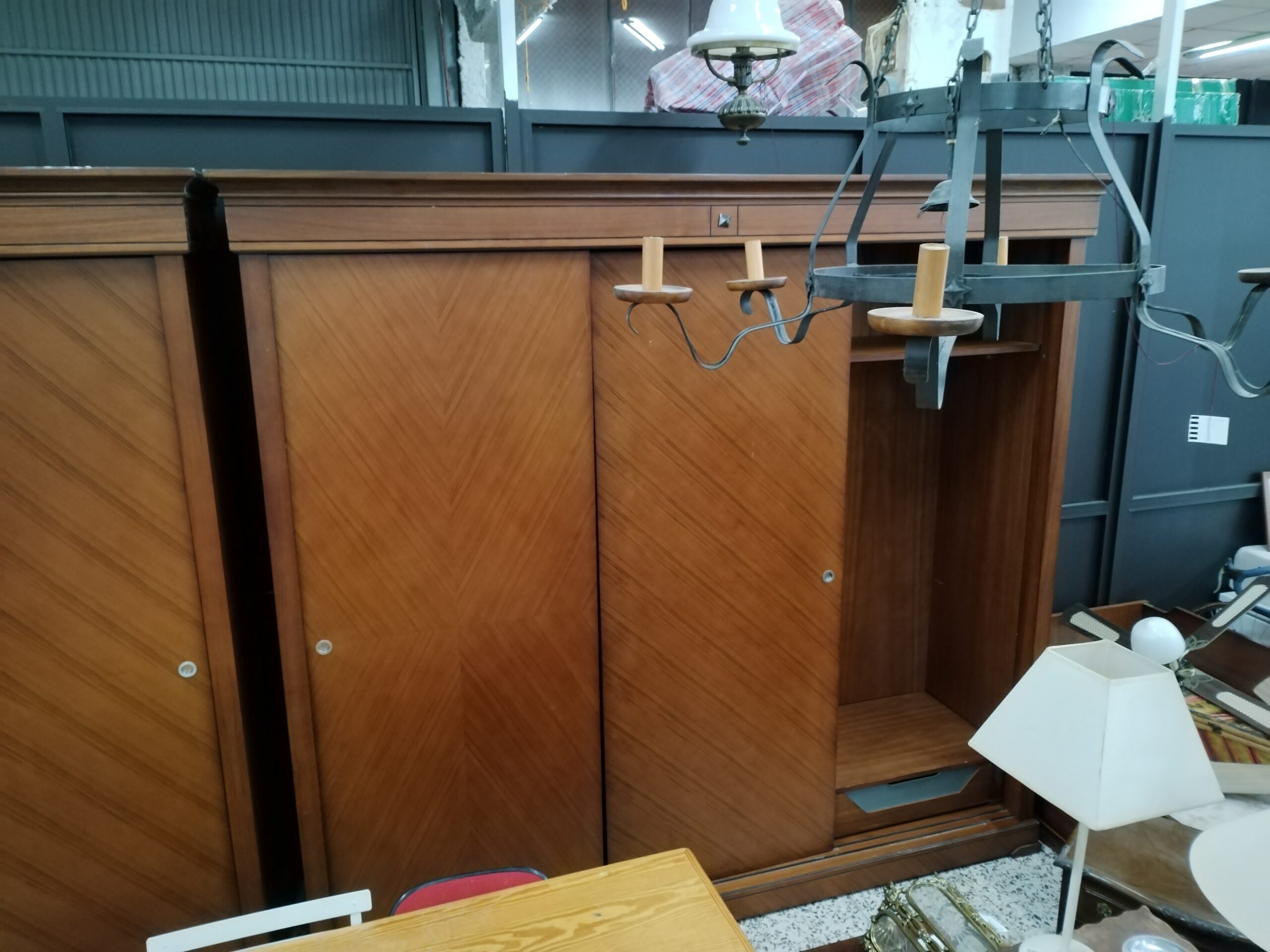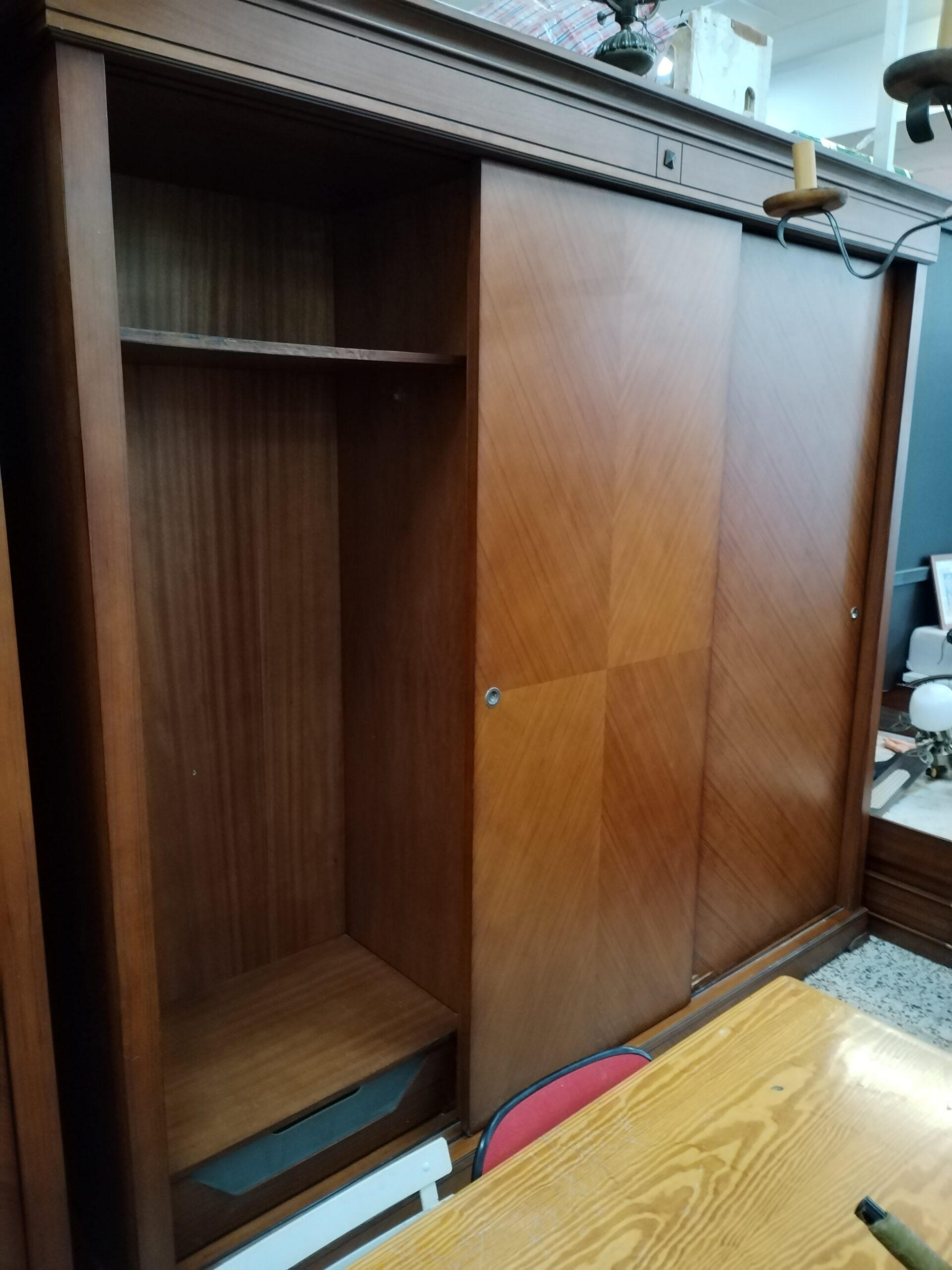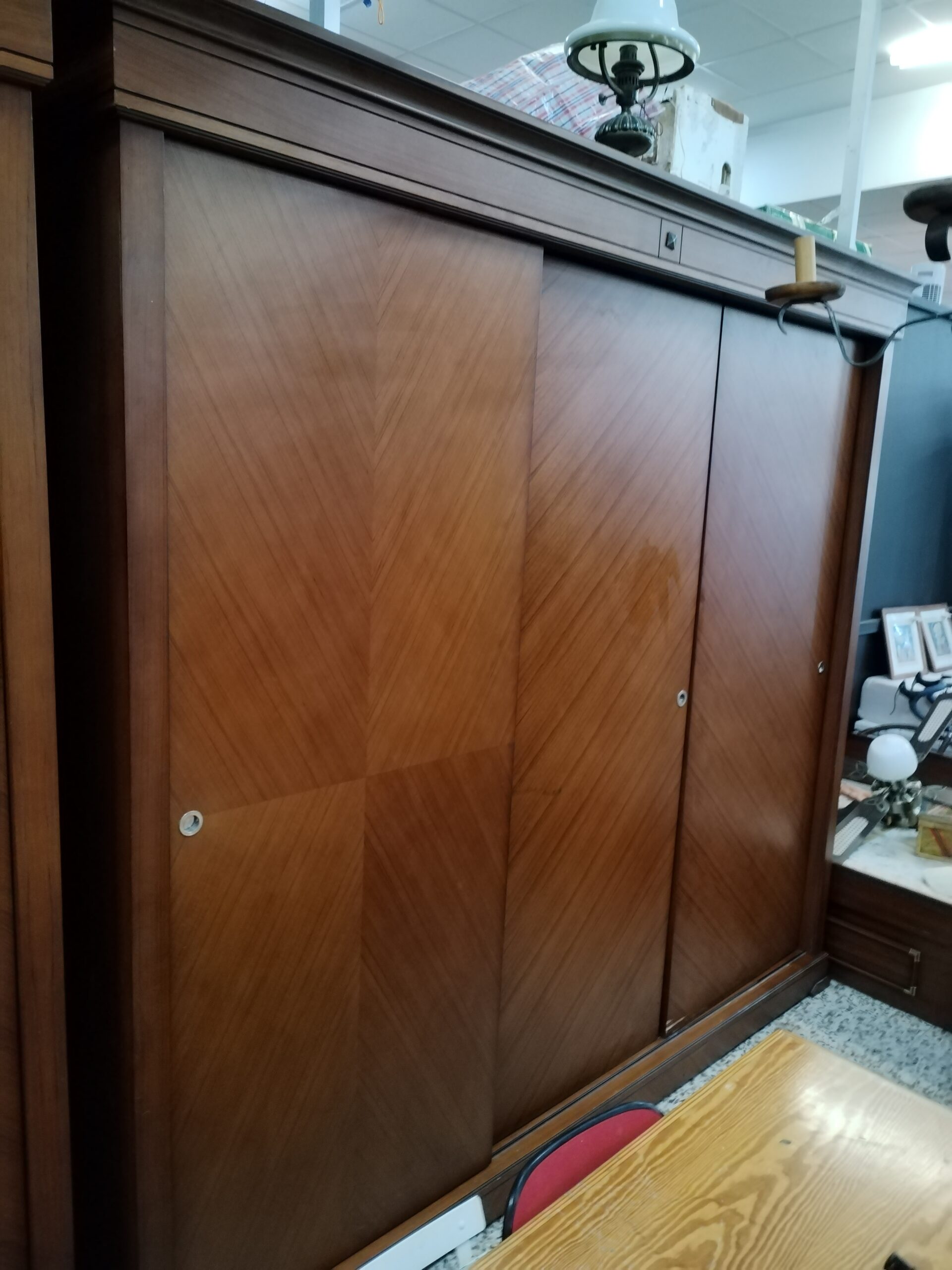 Armario grande de madera de cerezo, perfecto para quienes necesitan mayor capacidad de almacenamiento. Con tres puertas, su diseño se adapta a cualquier estilo de decoración y proporciona gran versatilidad.